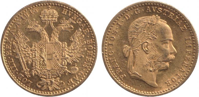 Trade Coinage: 1915 Franz Joseph ducat gold (3.49g 0.986) restrike KM 2267, a couple of tiny rim knocks otherwise Unc. (Image1)