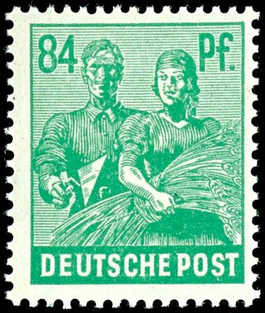 84 pfennigs worker dark emerald green, mint never hinged, colour attest Bernhoeft, Michel 200.- (958c) Certificate