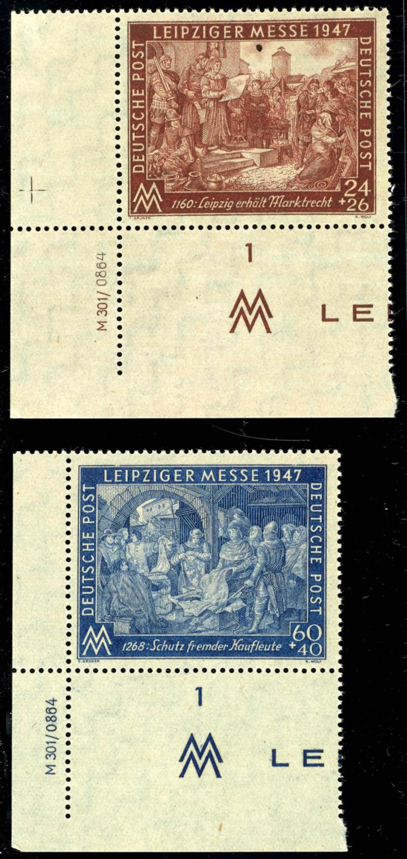 Fair stamps each as corner margin piece with printers mark, sound unfolded, Michel 200.- (941/42ICDV) Messe-Marken je als Eckrandstück mit Druckvermerk, tadellos ungefaltet, Mi. 200.- (Image)