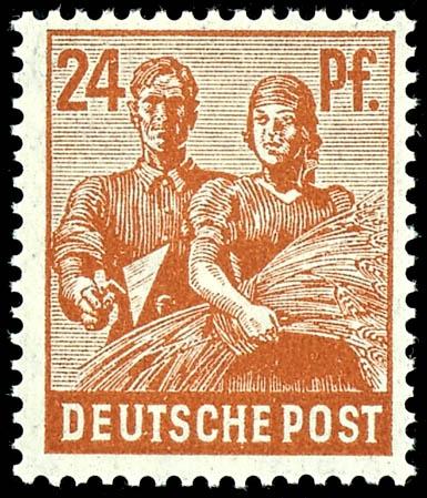 24 Pfg worker bright brown orange, mint never hinged, colour attest Hohmann, Michel 120.- (951d) Certificate 24 Pfg Arbeiter lebhaftbraunorange, postfrisch, Farbbefund Hohmann, Mi. 120.- (Image)