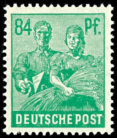 84 Pfennig Arbeiter dunkelsmaragdgrün, postfrisch, unsigniert, Fotobefund ARGE für Farbbestimmung eines Viererblocks (hier Marke rechts unten), Mi. 200.-