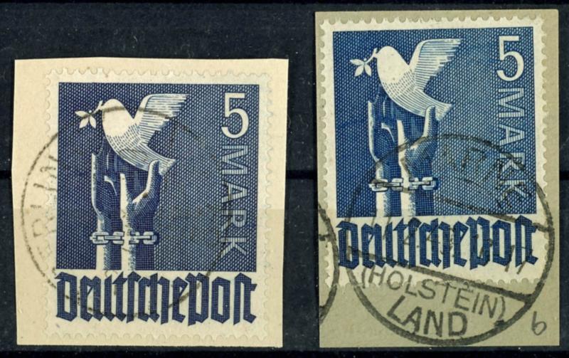 5 Mark dark purple ultramarine and violet ultramarine, perfect cds cancellation on in each case 2 separate letter pieces, both expertized Schlegel BPP, Michel 240.- (962a/b) (Image 1)(Image)