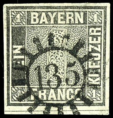 3 Kreuzer veilchenblau, farbfrisches und vollzähniges Kabinettstück, vom linken Bogenrand, entwertet mit etwas undeutlich abgeschlagenem Fünfringnummernstempel, Fotobefund Maria Brettl BPP "echt und einwandfrei", Mi. 250.-
