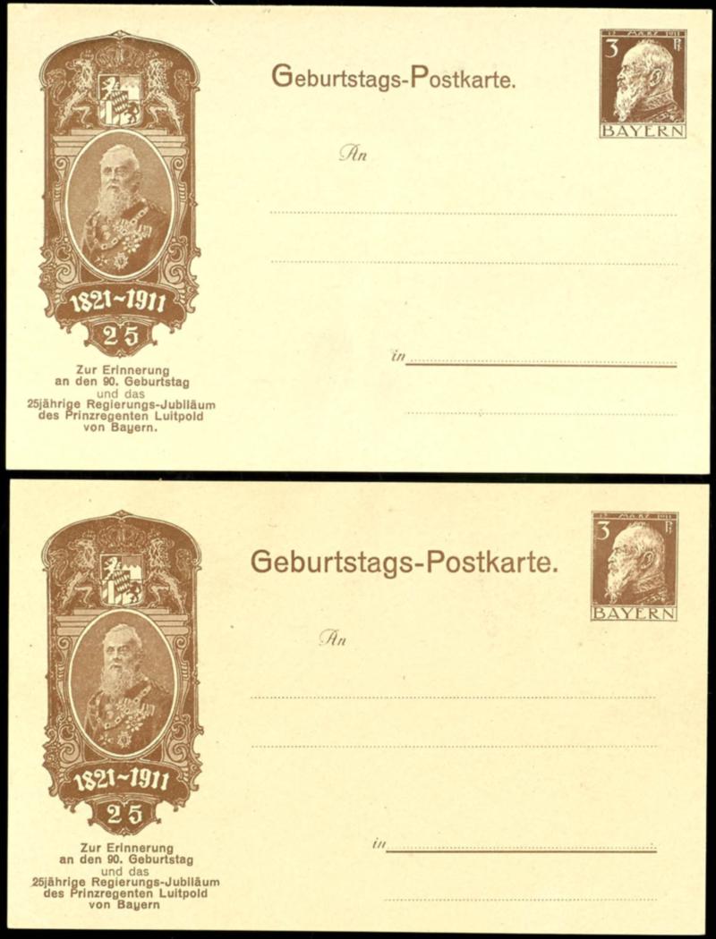 1911, 3 Pfennig Ganzsache zum Jubiläum 1821-1911. 2 Stück, 1 x Variante 01 und 1 x Variante 03. Ungebraucht.