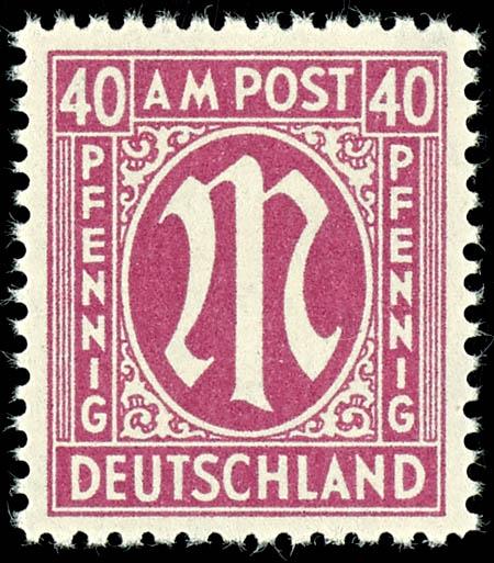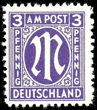 3 Pfennig AM-Post, deutscher Druck, dunkelbläulichviolett auf z-Papier, tadellos postfrisch, unsigniert, Fotoattestkopie Andreas Schlegel BPP (für ehemaligen Viererblock) "Die Qualität ist einwandfrei.", Mi. 500.- (Image 1)(Image)