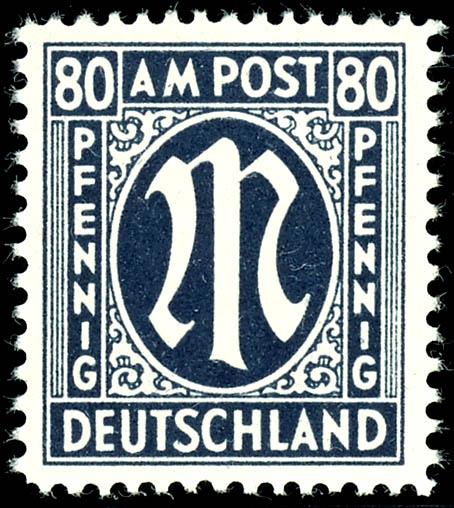 80 Pfennig AM-Post, deutscher Druck, schwarzblau, gez. 11½:11, postfrisch, Fotobefund Hettle BPP: "echt und einwandfrei", Mi. 180.- (Image 1)(Image)