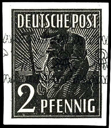 2 pfennigs worker with ribbon type overprint, imperforated, mint never hinged, among others expertized Schlegel BPP, Michel 200.- (36IV)
