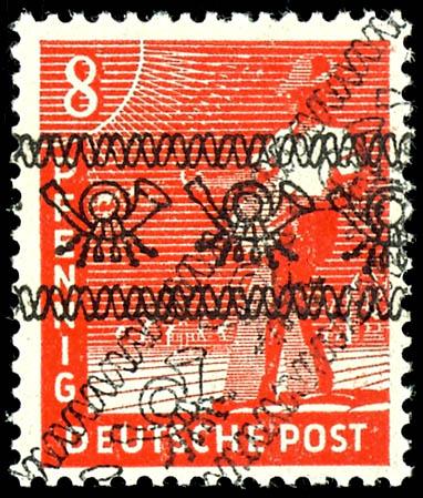 8 pfennigs worker, ribbon type overprint, variety "double overprint, once normal, once diagonal", perfectly mint never hinged, expertized Schlegel BPP (double signature), Michel 180.- (38IDDF)