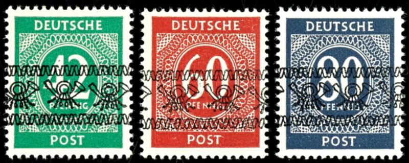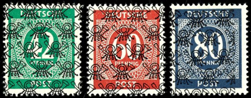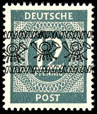 2 pfennigs - 84 pfennigs numerals with ribbon type overprint, complete set with 17 values, mint never hinged, very fine, dealers sign, photo expertize Hans Dieter Schlegel BPP (2025) "the quality is perfect. ", Michel 500.- (52/68I) Certificate