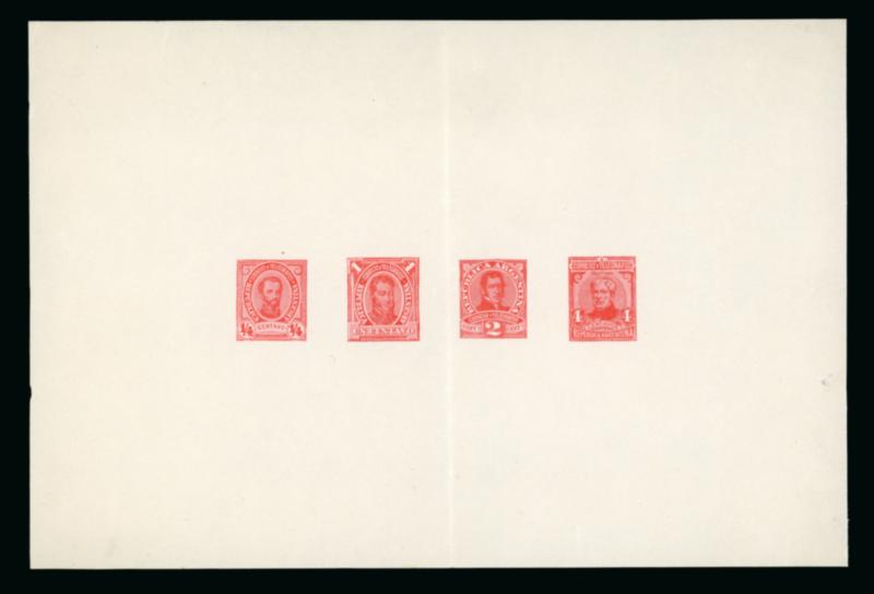 1882-1892 exhibition collection with 1880s Officials and surcharges with varieties, late 1880s with covers and stationery, 1890 four value collective proof in red, unused and used stamps with imperf 50c orange bottom imprint marginal, 1892 400th Anniversary 2c and 5c on specially printed pages, a good lot (Image)