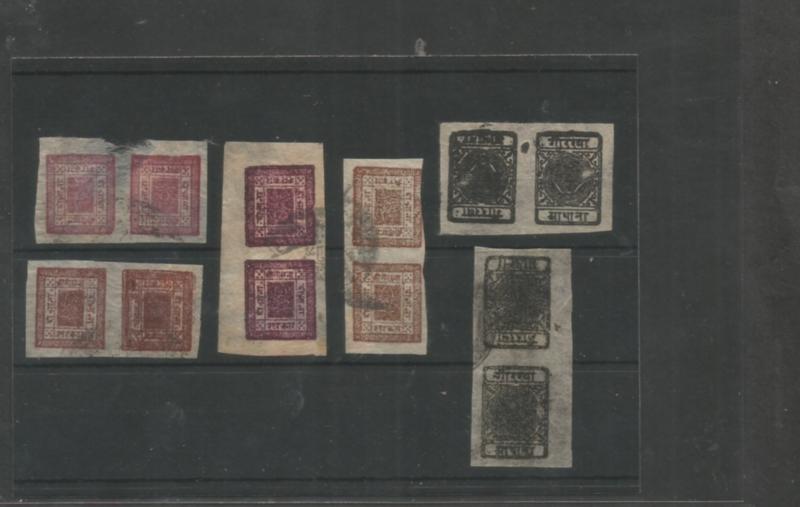 Nepal. 1881-1917 issues. Early local issues 6 used tete-beche pair. Mostly fine. Opportunity. (Image)