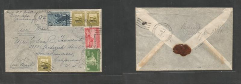 Philippines. 1941 (9 Jan) Zamboanga, Zambales - USA, CA, San Francisco. Air multifkd envelope, tied cds, reverse transited + red wax seal. (Image)
