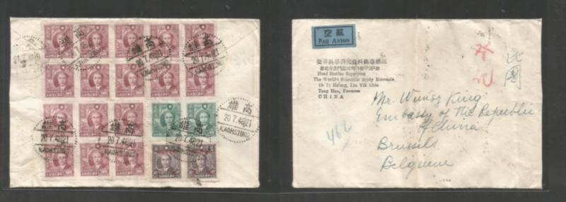 China - Xx. 1948 (9 Aug) Shanghai - USA, Plymouth, Mass. Illustrated multifkd env incl commemorative + red cross issue, tied bilingual cds. VF. (Image)