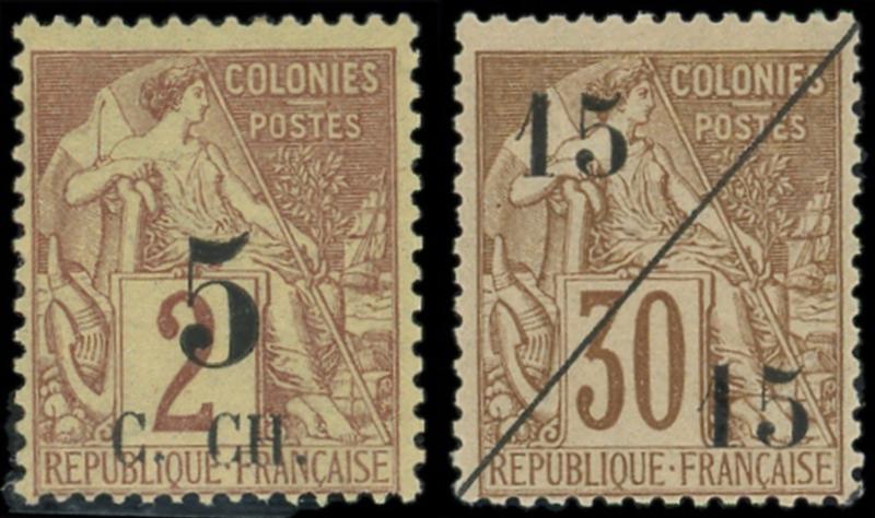 2 et 5 : 5 sur 2c. lilas-brun sur paille et 15 sur 30c. brun, TB (Image)