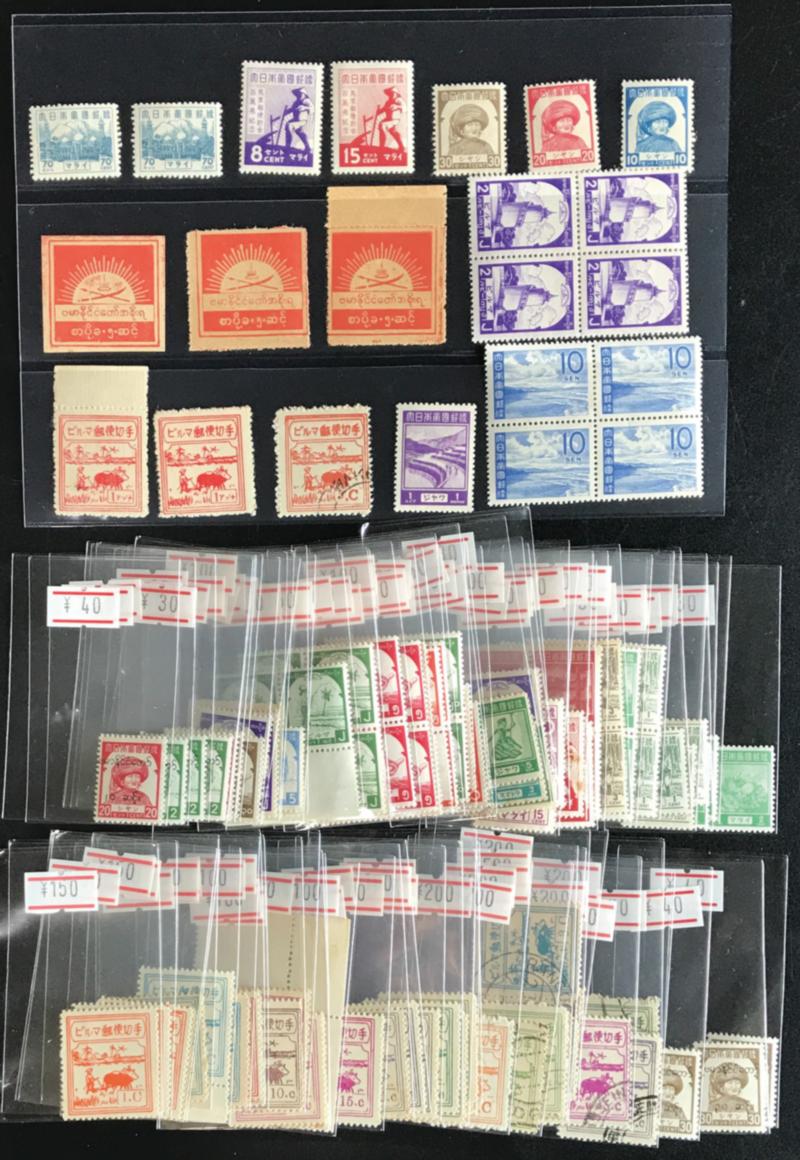 Japan occupation Burma and Malaya 110 examples and etc mainly unused with some used, including Malaya pictorial 70c unused*2 (Image1)