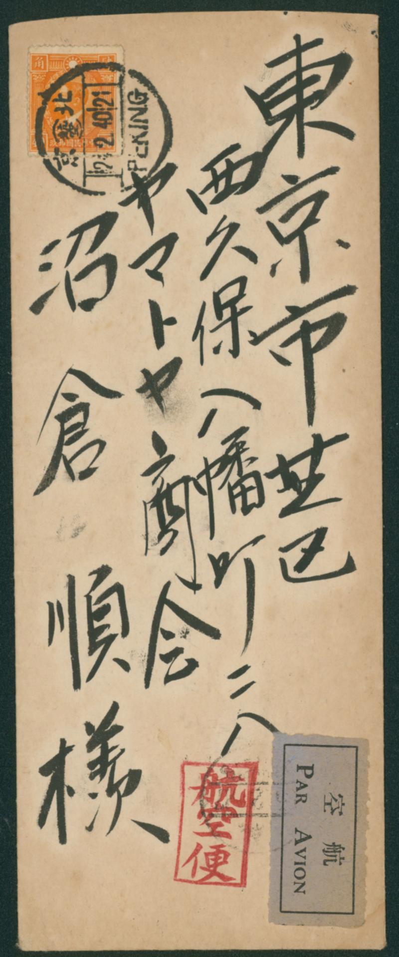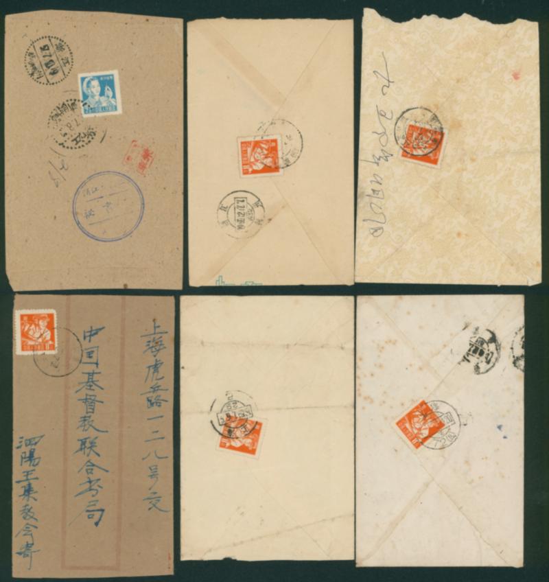 China , 5 covers 1935-1947 There are four examples of domestic usage, and one is in the United States. Includes interesting use cases such as special handling. There are examples of use where part of the envelope has been cut off. (Image1)