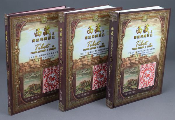 Fortune Wang,Tibet Postal History & Stamps, wonderful three-volume set in like-new condition; Vol I: History, Geography and Culture of Tibet, Vol II: Ancient and Early Postal History & Stamps of Tibet, and Vol III: Modern and Contemporary Postal History & Stamps of Tibet; lacks slipcase, Fine to Very Fine. (Image)