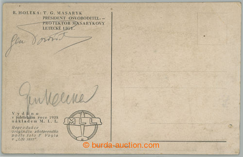 Autographs. HOLEKA Rudolf (1883-1946), the first militar pilot Czech nationality in/at lines Austria-Hungary vzduchoplavectva, later dosahl as the first Czechosl. militar pilot hodnosti brigadniho general Czechosl. air forces, autograph on author postcard, then signature brig. General Valentin POZDISEK; good condition (Image)