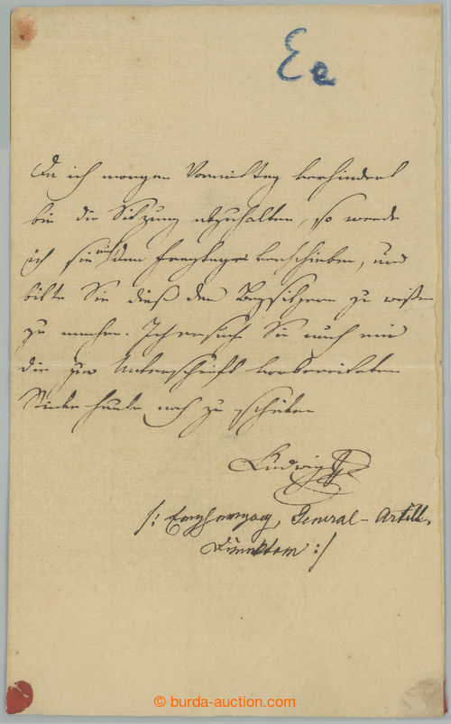 Autographs. LUDVIK HABSBURSKO-LOTRINSKY (1784-1864); Austrian velkovevoda, son Leopold II., brother emperor Francis I (II.), General and politician; handwritten message radnimu Weckbeckerovi about/by posunuti terminu schuze Secret state council/court; signature Ludwig and other by hand archduke, General Artillery, Direktor; rare text from of pen important member habsburskeho house! (Image)