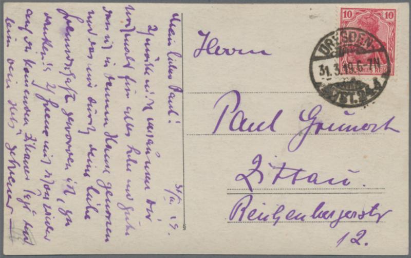 Autographen Richard TAUBER, österreichischer Opernsänger (1891-1948). Portraitphoto als Postkarte mit eigenhändigem Text und eigenhändiger Unterschrift auf der Bildseite, von Dresden, 31.3.19, nach Zittau. Sehr seltenes persönliches Zeitdokument dieses berühmten Opernsängers (u.a. weltberühmt durch das Lied "Dein ist mein ganzes Herz.") Erhaltung: Brief (Image)
