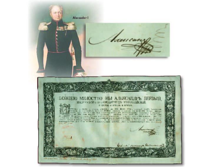 Alexander I, Kaiser von Russland (1777-1825), große Anerkennungsurkunde, datiert "St Petersburg 12 September 1804”, mit eigenhändiger Unterschrift "Alexander”, gefaltet und leicht Mangel, sonst in schöner Gesamterhaltung, selten