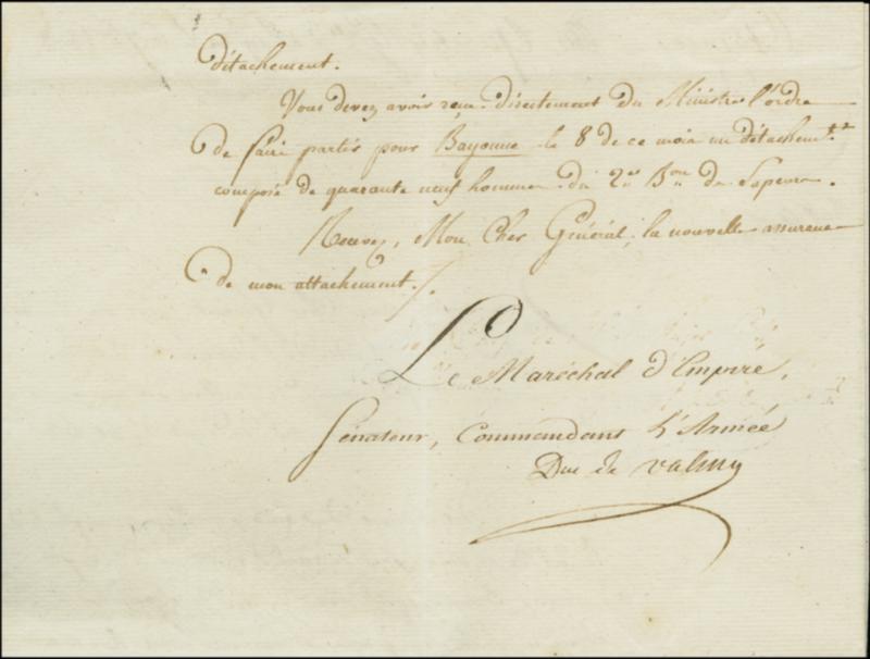 Kellermann, François Christoph, Herzog von Valmy, Marschall von Frankreich (1735-1820), eigenhändige Unterschrift auf Schreiben aus seinem Hauptquartier in Mainz an den Oberbefehlshaber der Reserve-Armee, General Laurent, in Wesel. Inhalt bezüglich der Mobilmachung für die Besetzung Spaniens.