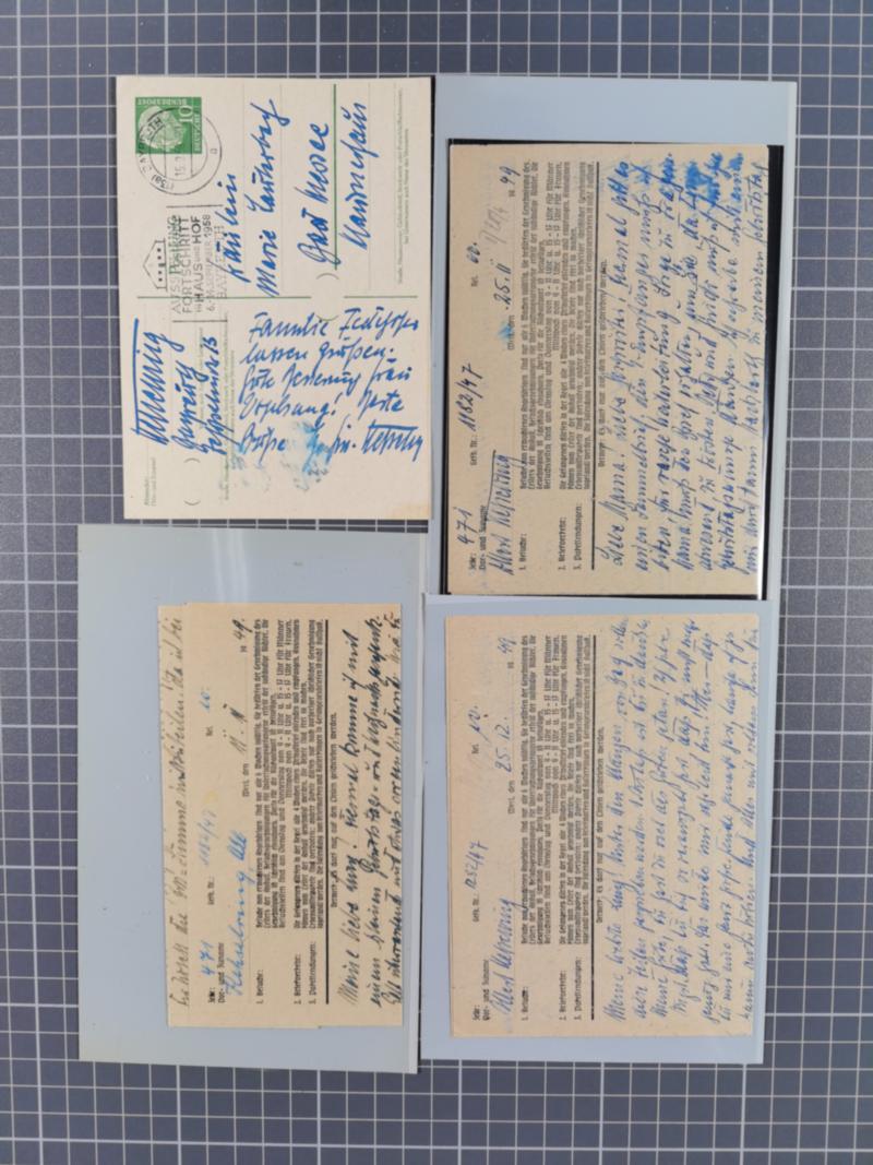 Kesselring, Albert, eigenhändige Korrespondenz von insgesamt 11 Karten und 28 Briefen zwischen September 1947 und März 1952 an seine Frau, die Briefe teils mit Versandumschlag, 5 Briefe auf Kriegsgefangenen-Formularen. Dazu etwa 20 Antwort-Briefe seiner Frau sowie einige Dokumente (u.a. Bestätigung der arischen Abstammung). Ein hochinteressantes Konvolut.