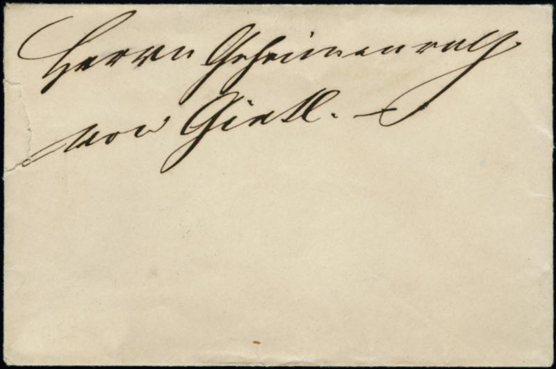 Ludwig II, König von Bayern (1845-1886), eigenhändig beschrifteter Briefumschlag an "Herrn Geheimrath von Gietl" (langjähriger Leibarzt), rückseitig königliches Lacksiegel. Kleiner Öffnungsmangel.