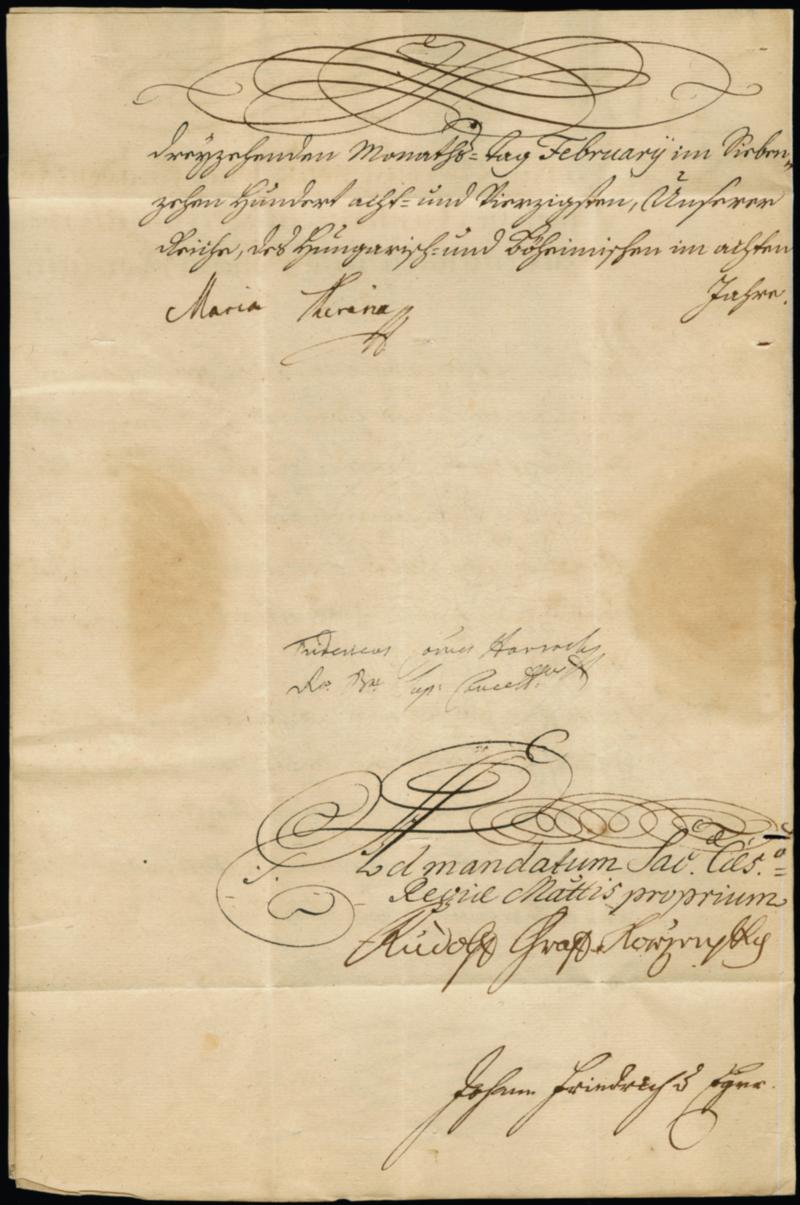 Maria Theresia,Kaiserin von Österreich (1717–1780). eigenhändige Unterschrift "Maria Theresia" auf komplettem Faltbrief mit papiergedecktem Siegel, 1748 an die mährischen Stände.