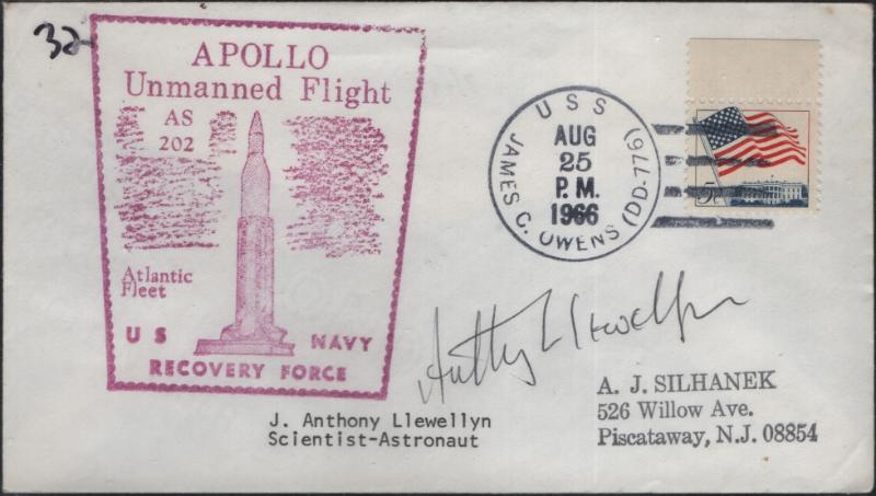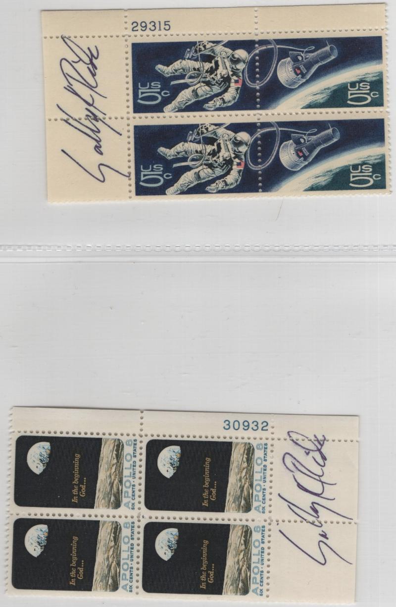 APOLLO Space Program (48) autographed cvrs, mostly on Recovery Ship cacheted cvrs, from 1966 Unmanned flight AS202, 1968 Apollo 7 to 1972 Apollo 17, Skylab & Apollo-Soyuz (1975); autographs IDed on cover by collector, genuine & a few suspected autopens or fakes (Neil Armstrong & others), both astronauts & staff, incl Eisele, Lovell, Anders, Schirra, Schweickart, Cernan, Aldrin, Gordon, Collins, Bean, Conrad, Haise, von Braun, director Ross, others; couple later cvrs are crew-signed; besides recovery ship cvrs, there is a typed poem signed by Lousma & a photograph of Ed Gibson in space suit, inscribed, print of Skylab also signed & inscribed by Gibson; gen VF (Image)