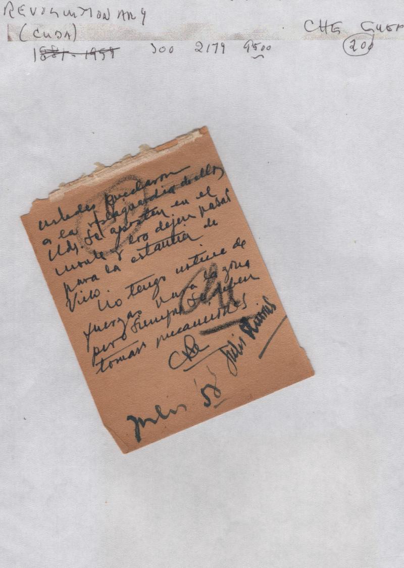 CUBA (4) Slips of paper w/ handwriting & signatures of socialist revolutionaries Che & Fidel; slip of paper w/ names incl Fidel, unsure if signature; (3) slips of paper w/ writing & signature Che, two dated 1958; from huge autograph estate but w/ no Certs, sold as-is; F-VF (Image)