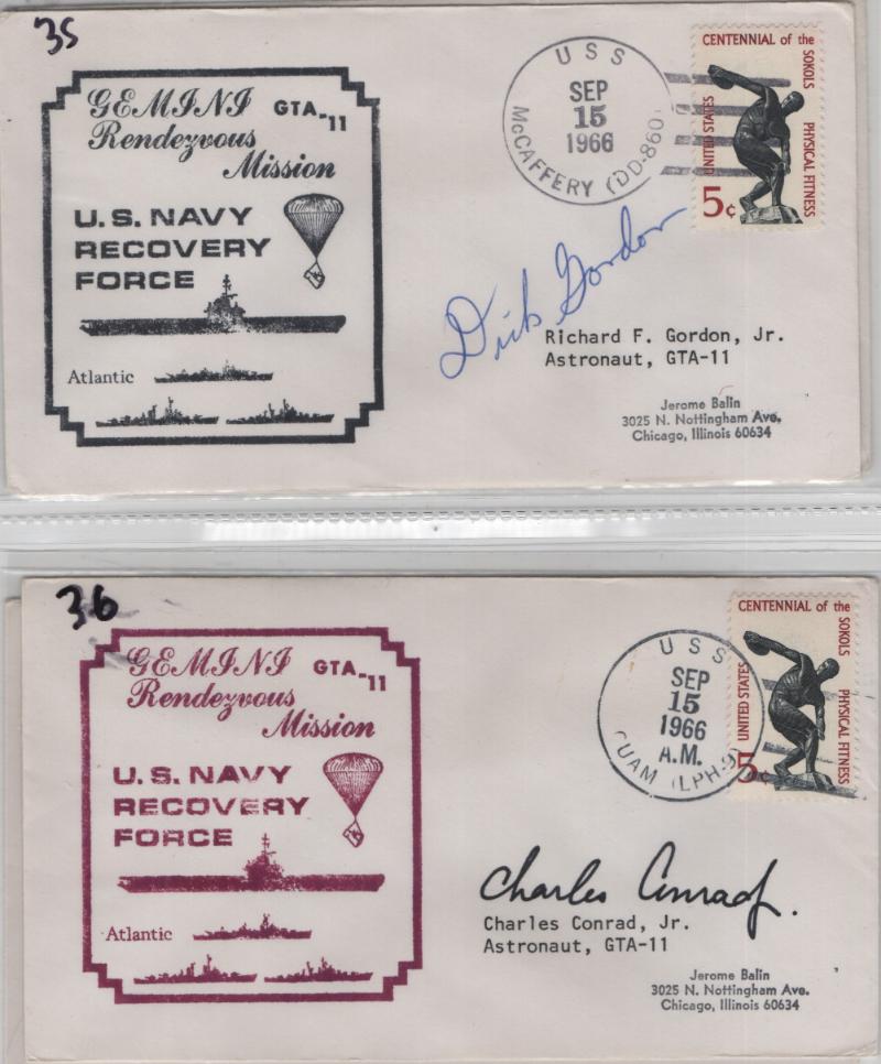 GEMINI Space Program (31) signed covers, ea w/ one signature & cachet from a Recovery Ship, 1965-66, some famous names (Schirra, Carpenter, Young, Glenn, Lovell, Aldrin, Stafford, Gordon, others) but there are some autopens present (see web photos); no Certs, many addr to same collector; gen VF (Image)
