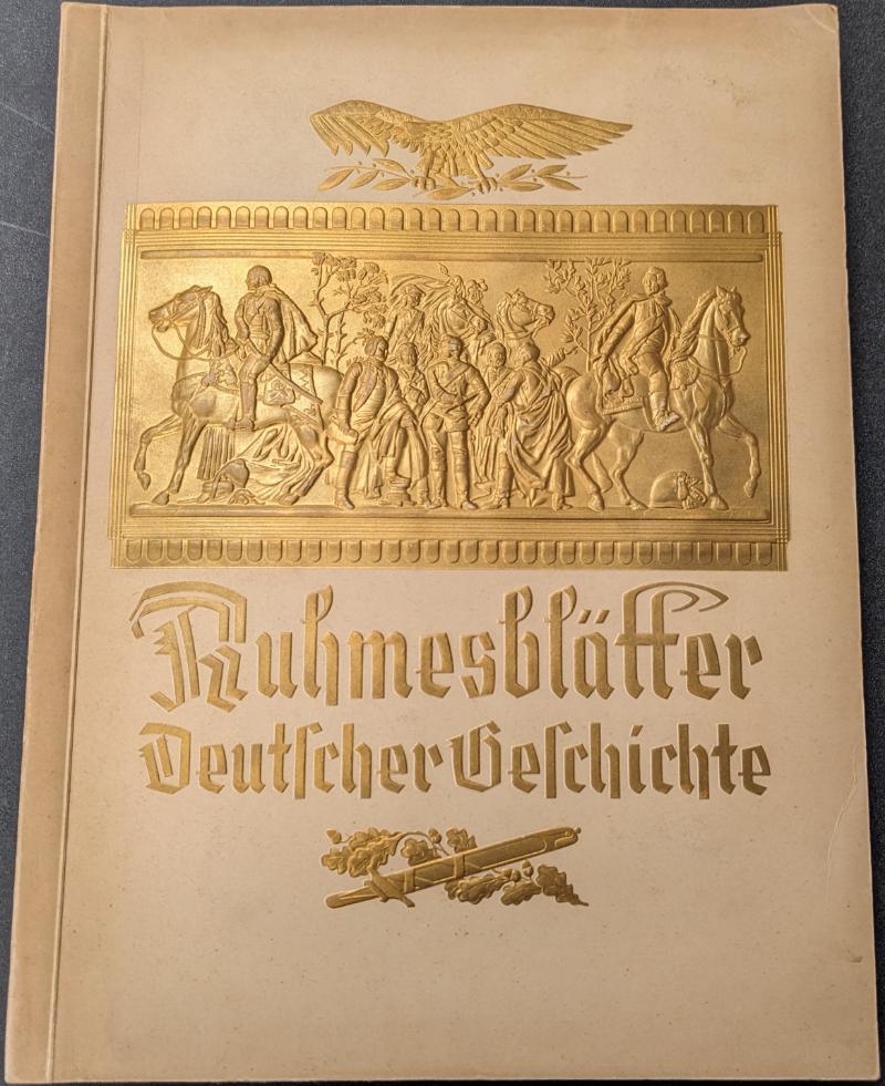 (3) Historical themed cigarette card albums; Ruhmesblaetter Deutscher Geschichte (252) color cards from Germanic tribes to Colonial Empire; Die Grossen der Weltgeschichte (252) small color cards w/ portraits of famous people from around the world; Gestalten der Weltgeschichte w/ more color portraits of famous Europeans from the Reformation until late 19th Cent; all appear cplt w/ only minor typical wear to pages or covers, gen VF (Image)