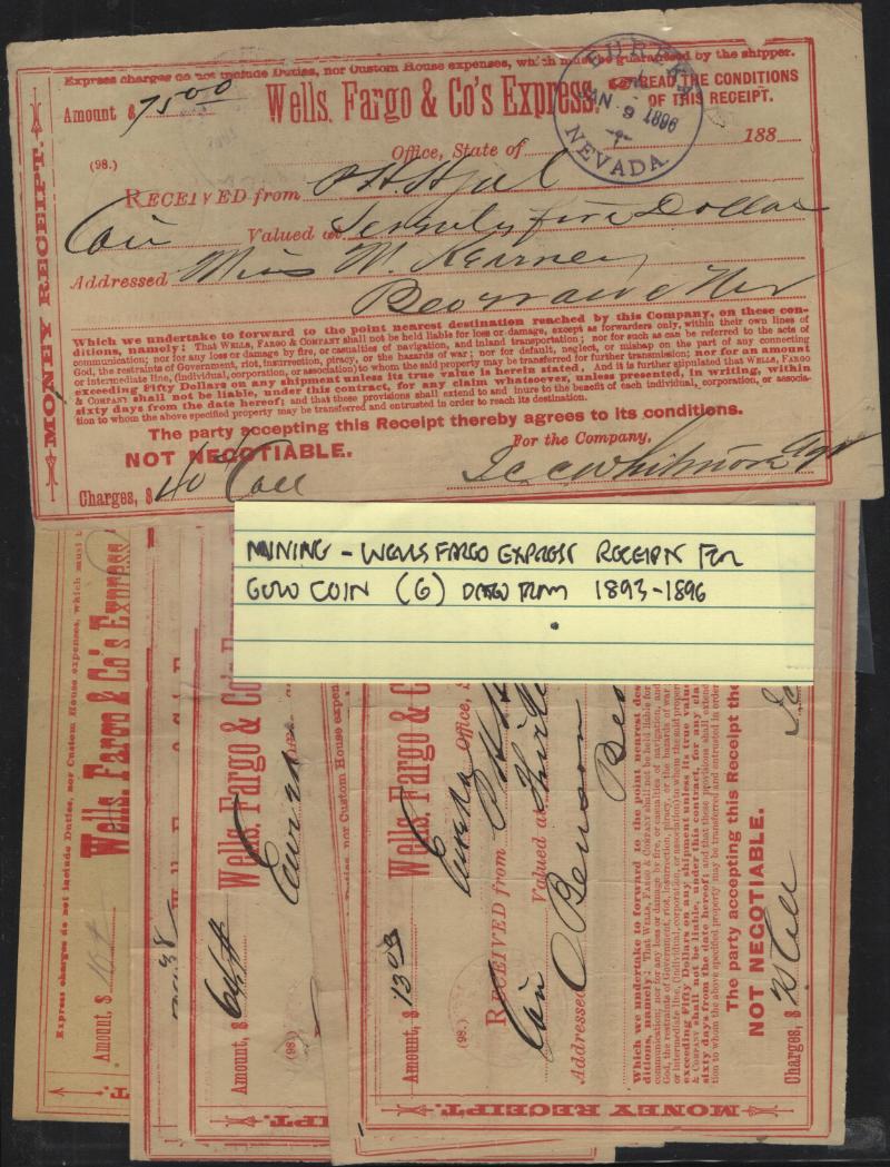 Accum abt (20+) mining topical items, mainly 19th Cent; Nevada incl (6) Wells Fargo gold coin money receipts & 1870 Miners Hope Gold & Silver Mining stock cert, Arizona incl 1861 engraving of silver mine, Alaska incl 1912 Yukon River notice of location for (40) acres for mining, also incl 1925 Davenports Digest w/ mining stock prices & stkbk w/ (38) gold coin bond receipts, typical mixed cond for this era (Image)