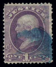 O25,1¢ Justice Dept., Fine, with light upper right corner crease and blue ccls Cat($103) (Image)
