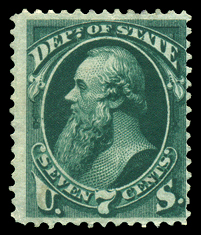 O61var,7¢ State Dept., Fine Unused, with few perforation creases and with horizontal plate scratch in center of left margin Cat($140) (Image)