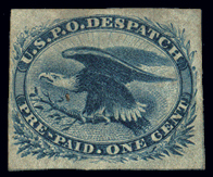 LO5,1¢ Blue, Eagle, 1875 Post Office Carrier Stamp, First Official Government Reprint, VF-XF Unused, natural gum as issued, only (10,000) printed Cat($25) (Image)
