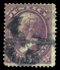 O31,15¢ Justice Dept., Fine, with indeterminate fancy ccl (battle axe, bat, phoenix, ?) Cat($200) (Image)
