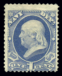 O35,1¢ Navy Dept., Ultramarine, Fine-Avg Unused, barely in at bottom Cat($75) (Image)