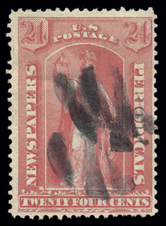PR17,24¢ Rose, F-VF, with short perforations and handstamped ccl Cat($175) (Image)