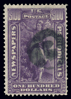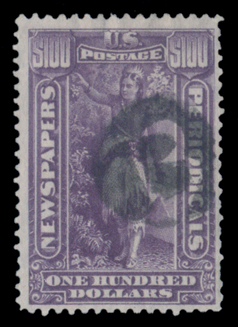 PR125,$100.00 PURPLE, F-VF, with handstamped ccl. Used are seldom seen! Cat($300) (Image)