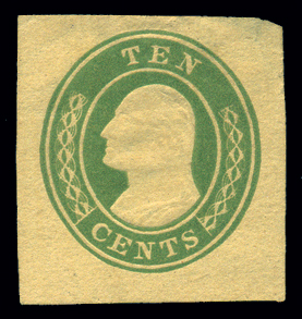 U18,10¢ Green on Buff, Official Reprint on Vertically Laid Paper, VF Unused, ngai (Image)