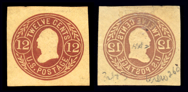 U69var,12¢ Red Brown on Buff, Stamped Envelope Cut Square with complete offset printing on reverse, XF Unused, ngai, cv for regular cut square Cat($125) (Image)