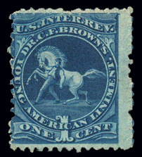 RS36dvar,1¢ Blue, Dr. C.F. Brown, extra frameline at right variety (not listed), Fine-Avg Unused, cv for Fine gummed stamp with small faults Cat($100) (Image)