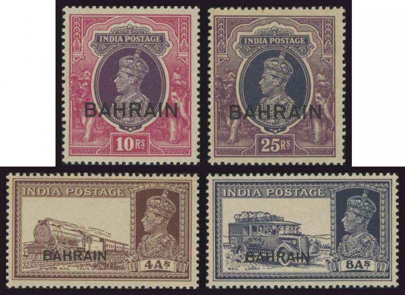 1938-41 Overprints on India KGVI 3p to 25r SG 20-37 (the 8a & 12a are lightly mounted) and 1950-55 Overprints on Great Britain KGVI SG 71-79, unmounted, Cat £1120 for unmounted.