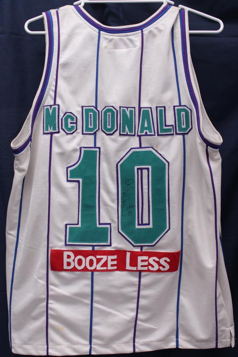 DARRYL McDONALD: signature on match-worn North Melbourne Giants singlet No.10 from 1994 NBL Championship season, framed & glazed, overall 71x95cm. With CoA. [Nicknamed "D-Mac", he played college basketball for the Texas A&M Aggies; and played in the NBL for the North Melbourne Giants, Victoria Titans/Giants and the Melbourne Tigers]. (Image1)