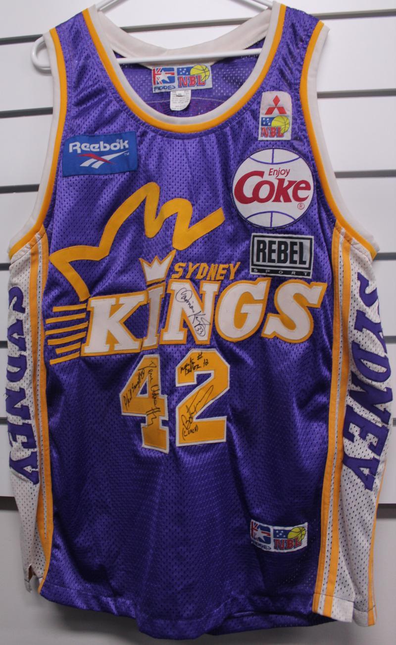 SYDNEY KINGS: Leon Trimingham's match-worn Sydney Kings singlet with 13 signatures including Bruce Bolden, Dean Uthoff & Leon Trimingham. (Image1)