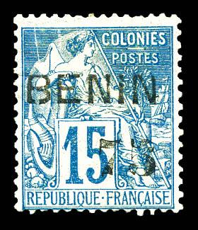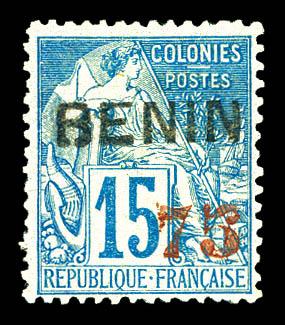 N°17, 75 (noir) sur 15c bleu, tirage 100 exemplaires. SUP. R.R (signé Brun/Calves/Scheller/certificat) Qualité: * Cote: 4700 euros (Image)