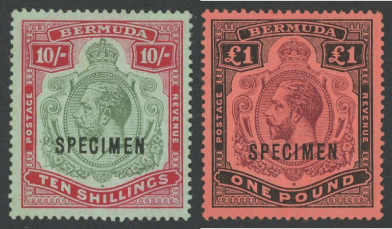 1924-32 KGV Keyplates Multiple Script CA Watermark 2/- 2/6d & 10/- overprinted 'SPECIMEN' (the 2/6d in Red) and 12/6d punctured 'SPECIMEN' SG 88s-93s, minor gum tropicalisation, the 2/- & 10/- with small hinge remainders, the 2/6d lightly mounted, the 12/6d unmounted, Cat £600+ for mounted.