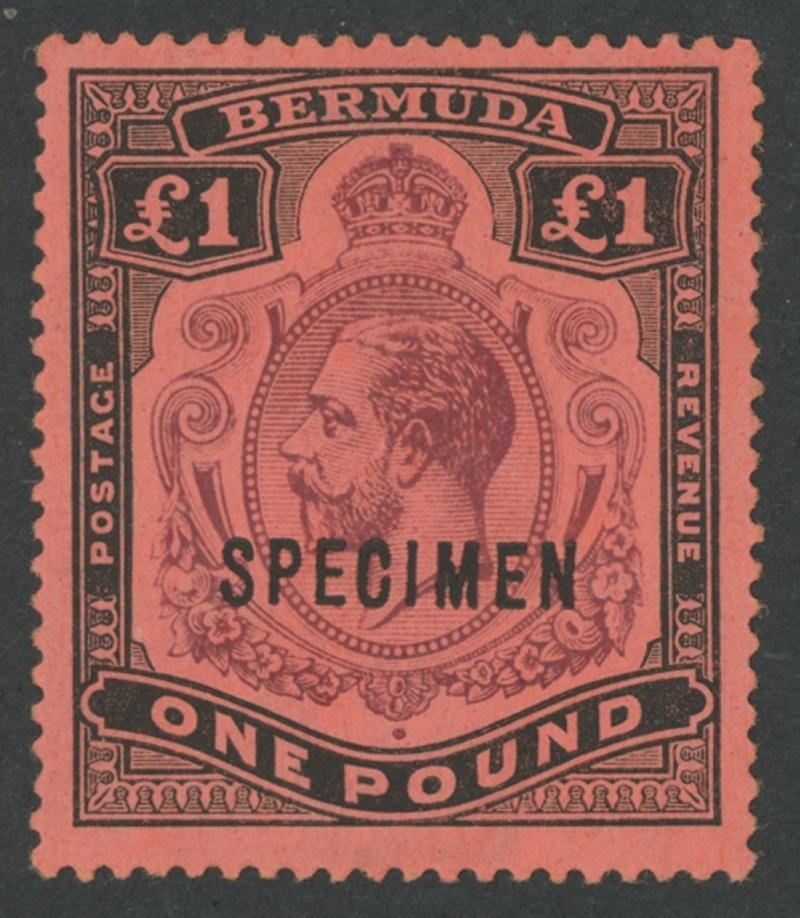 1924-32 KGV Keyplates Multiple Crown CA Watermark £1 purple & black/red overprinted 'SPECIMEN' SG 55s, quite well-centred, small hinge remainder, Cat £150+. (Image1)